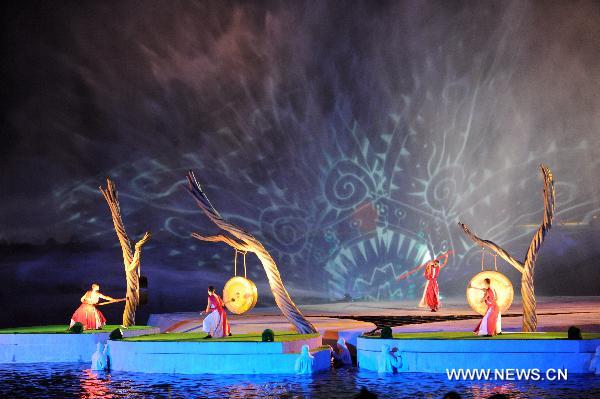 Artists perform during a New Year celebration at the Taipei International Flora Exposition in Taipei, southeast China's Taiwan, Dec. 31, 2010. A performance was held here to mark the New Year's Eve on Friday night. (Xinhua/Wu Ching-teng)