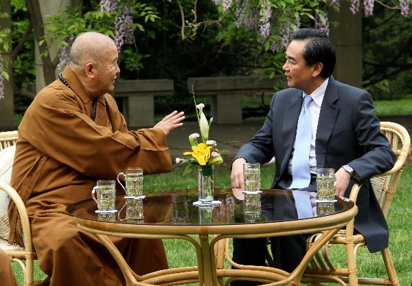BEIJING, May 14 (Xinhua) -- The Chinese mainland's Taiwan affairs chief Wang Yi met with Master Hsing Yun, founder of the Taiwan-based Fo Guang Shan Monastery here Friday.