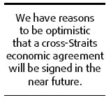 The favorable changes that have taken place in cross-Straits relations have exceeded expectations. We have reasons to be optimistic that a cross-Straits economic agreement will be signed in the near future to create a win-win situation for both sides. |
