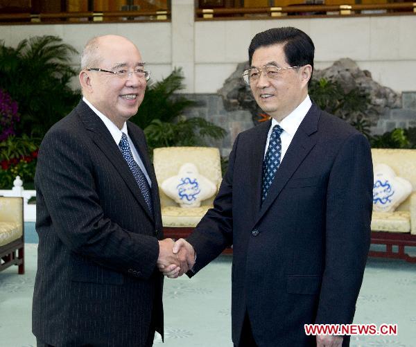 Hu stressed that both sides should cement their political foundations and expand consultations in order to create more favorable conditions for the development of cross-Strait ties.