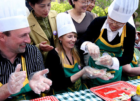 About 150 families in the Gubei area of Shanghai's Changning District make dumplings and participate in other activities to mark the one-year countdown to the 2010 World Expo.(Photo Source: Shanghai Daily)