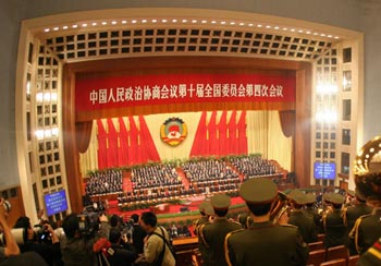 The Fourth Session of the Tenth National Committee of the Chinese People's Political Consultative Conference (CPPCC) opens at the Great Hall of the People in Beijing March 3, 2006. [Xinhua Photo]