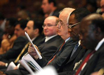 Photo taken on Mar. 3, 2006 shows some foreign diplomatic representatives at the Fourth Session of the Tenth National Committee of the CPPCC in Beijing. [Xinhua Photo] |