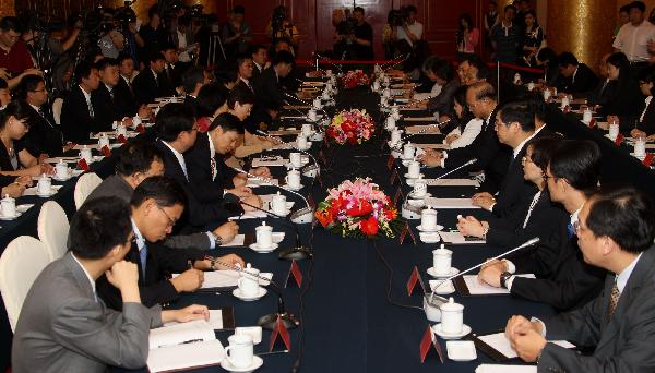 The third round of an expert-level cross-Strait talks on an economic pact is held in Beijing June 13, 2010. Experts from the Chinese mainland and Taiwan Sunday started their third round of talks in Beijing to pave the way for a long-awaited pact to boost cross-Strait economic ties. During the talks, the two sides will discuss the main content of the Economic Cooperation Framework Agreement (ECFA), and goods and services trade in the "early harvest program." (Xinhua/Wang Yongji)BEIJING, June 13 (Xinhua) -- Experts from the Chinese mainland and Taiwan Sunday started their third round of talks in Beijing to pave the way for a long-awaited pact to boost cross-Strait economic ties.