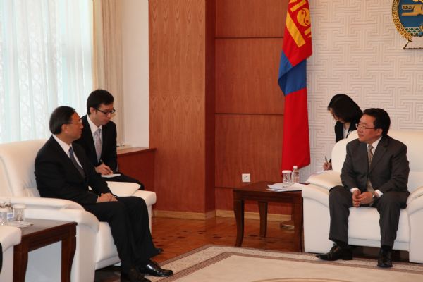 ULAN BATOR - President Elbegdorj Tsakhia met here Thursday with visiting Chinese Foreign Minister Yang Jiechi on promotion of relations between their two neighboring countries.