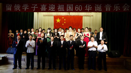 Chinese overseas students perform during a concert celebrating the 60th anniversary of the founding of the People's Republic of China, in Moscow, capital of Russia, Sept. 12, 2009. (Xinhua Photo)