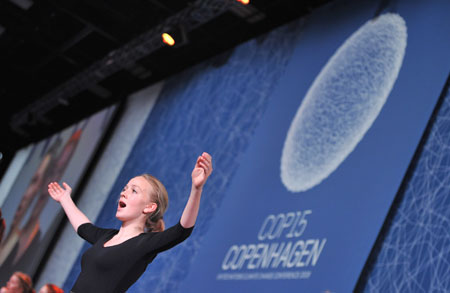 Danish girls dance during the opening ceremony of the high-level segment of UN Climate Change Conference in Copenhagen, capital of Denmark,Dec. 15, 2009.(Xinhua/Wu Wei)