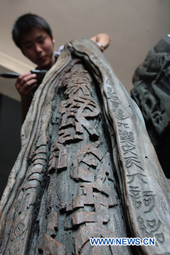 A student with the Art Faculty of Mudanjiang Teachers College works on a piece of Book Engraving Sculpt Artwork, in Mudanjiang City, northeast China's Heilongjiang Province, June 10, 2010. It took two years of some 100 teachers and students with the Art Faculty of Mudanjiang Teachers College to complete a total of 325 pieces of Book Engraving Sculpt Artwork, which are set to turn up at the ongoing 2010 Shanghai World Expo. (Xinhua/Zhuang Wenbin)