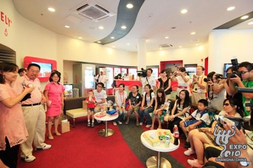 Nine winners of an online lucky draw of the Coca-Cola Pavilion toured the pavilion via fast access at 1pm yesterday.