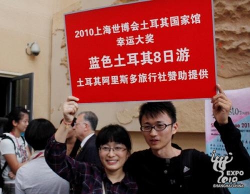 Turkey Pavilion has sent many gift packages to lucky visitors, including round air tickets from Shanghai to Istanbul. Sencar Ozsoy said the policy will continue and more visitors will win the gift packages.