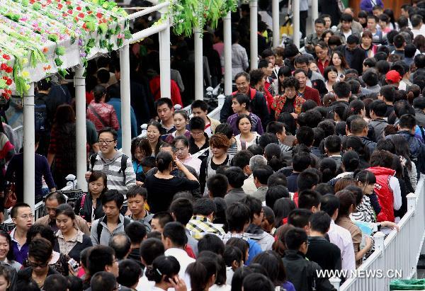 Tourists visit the World Expo Park in Shanghai, east China, Oct. 24, 2010. The number of visitors to the Shanghai World Expo 2010 topped 70 million Sunday, reaching the expectation of the Expo Bureau before its opening on May 1, according to the official Expo website on Sunday. (Xinhua/Liu Ying)