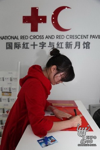 Wang was visiting the pavilion with her boyfriend. Wang said that she was excited to be a lucky visitor. Wang also said she was a member of the Red Cross society when she was at medical school. She wrote on the visitors’ message book that she will donate all her life into caring the old people as a medical worker.