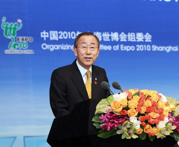 United Nations Secretary General Ban Ki-moon addresses the opening ceremony of the Expo 2010 Shanghai China Summit Forum held in Shanghai, east China, Oct. 31, 2010. The Shanghai World Expo 2010 is set to be closed later Sunday. (Xinhua/Pang Xinglei)