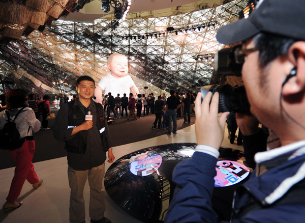 Bamboo decorations at Indonesia Pavilion in Shanghai Expo
