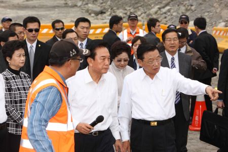 Chen Yunlin (C Front), president of the Chinese mainland's Association for Relations Across the Taiwan Straits (ARATS), visits Nantou County in southeast China's Taiwan Dec. 24, 2009. (Xinhua/Yuan Man)