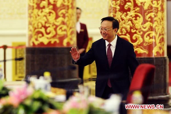 Chinese Foreign Minister Yang Jiechi walks in before a news conference on the sidelines of the Fourth Session of the 11th National People's Congress (NPC) at the Great Hall of the People in Beijing, China, March 7, 2011. (Xinhua/Ren Yong)