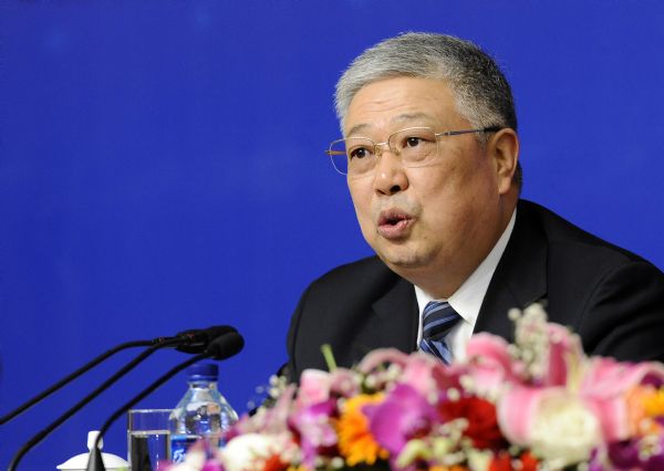 Chinese minister of civil affairs Li Liguo speaks at a press conference of the Fourth Session of the 11th National People's Congress (NPC) focusing on poor people living assistance and pension service system construction in Beijing, capital of China, March 8, 2011. (Xinhua/Ren Yong)