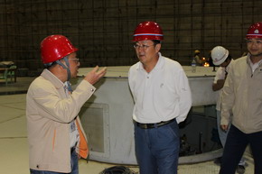 听取中方负责人介绍机组试运行情况 与缅方现场负责人交谈