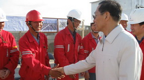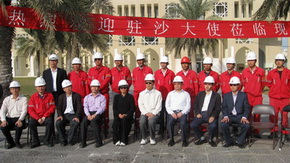 杨大使代表中国驻沙使馆向施工现场干部职工致以诚挚的新春问候。杨大使鼓励大家建一流工程,创一流业绩,为祖国争光。