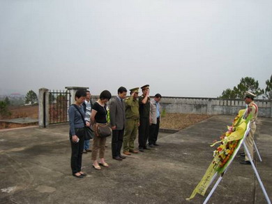 中新网4月1日电 据中国外交部网站消息,2010年清明节前夕,中国驻老挝使馆参赞龙定斌及工作人员、烈士家属等人专程前往老挝北部的川圹省中国烈士陵园扫墓。