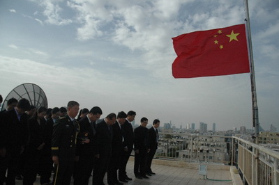 2010年4月21日9时,中国驻以色列大使馆举行哀悼仪式,沉痛悼念在青海玉树地震灾害中遇难的同胞。