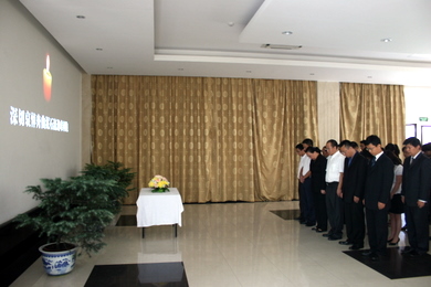 2010年8月15日上午11时,驻尼泊尔使馆举行哀悼仪式,全体馆员衣着庄重、严肃、整洁,为在甘肃舟曲特大山洪泥石流灾害中遇难的同胞默哀。