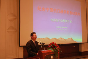 驻柬埔寨临时代办贺乐平在欢迎辞中表示,今年9月3日是中国人民抗日战争胜利65周年。中国人民抗日战争的胜利,是近代以来中华民族针对外敌入侵第一次取得的全面彻底胜利,成为中华民族走向复兴的历史转折点。全国各族人民团结一心、共御外侮,彰显了中华民族不畏强暴的坚强意志和百折不挠的伟大精神。今天,我们在这里以电影和图片等形式重温并纪念抗战历史,是为了深刻认识过去,更好走向未来,要努力继承和发扬万众一心、团结奋斗的抗战精神,最大限度地凝聚所有中华儿女的智慧和力量,把民族复兴大业推向前进。中国的发展进步离不开和平稳定的外部环境,世界的和平发展也离不开中国的繁荣稳定。一个致力于维护世界和平、推动建设和谐世界、坚持走和平发展道路的中国,必将为增进全人类福祉作出更大贡献。
