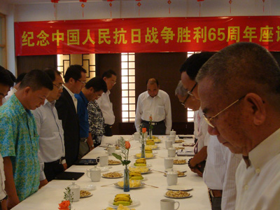 潘大使和参加座谈会的华社代表共同为为国牺牲的抗日英烈们默哀