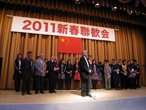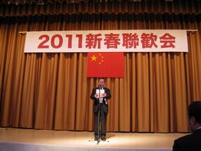 程大使首先向横滨侨胞致以新春的祝福!他在贺词中说,过去的一年祖国人民克服国内外严峻挑战,成功举办上海世博会、广州亚运会,战胜玉树地震、舟曲泥石流等重大自然灾害,积极应对国际金融危机影响,实现了经济快速增长, GDP已跃居世界第二位,取得了举世瞩目的历史性成就。这是包括旅日侨胞在内的全国人民共同努力的结果,值得我们骄傲与自豪!