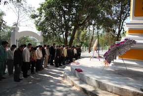 为缅怀先烈,中国驻老挝使馆每年清明节派人前往祭扫。今年是中老建交50周年,也是中国共产党成立90周年,驻老挝使馆以此为契机,同老方联合举办祭扫活动,旨在继承革命先烈遗志,巩固中老传统睦邻友好,弘扬国际主义和爱国主义精神,更加具有现实意义。 |