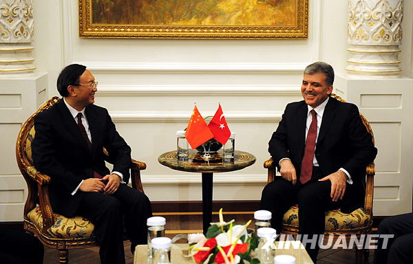 1月26日,土耳其总统居尔在伊斯坦布尔会见正在土耳其出席阿富汗问题地区峰会的胡锦涛主席特别代表、中国外交部长杨洁篪。新华社记者张锰摄