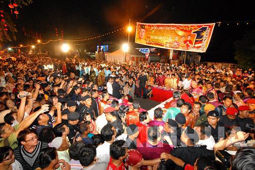 2月20日,马来西亚总理纳吉布来到马来西亚第二大的华人新村雪兰莪州班达马兰,与当地华人华侨一起贺新春。