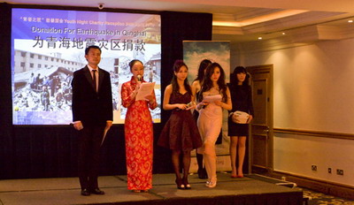 2010年4月24日晚,驻英国使馆公使衔参赞张立荣应邀出席英国华人青年联合会在伦敦举办的为青海玉树地震灾区捐款活动。来自伦敦、曼彻斯特、剑桥、牛津、萨里、爱丁堡、卡迪夫等从事金融、法律、科技、工程和文化艺术等各界在英华人青年专业人士和部分旅英留学生约百人参加。活动开始时,全体与会人士默哀一分钟悼念玉树地震中死去的同胞。