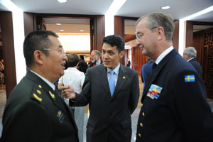 欧洲理事会危机管理和计划总司总司长阿赫诺德女士、欧盟军事委员会主席哈坎·希伦上将、欧盟军事参谋部主任奥赫中将、比利时国王副官、王室首席礼宾负责人瓦赫诺特海军中将等政界要员和军方高级将领,部分国家驻欧盟军事代表、驻比利时使节、武官以及比各界友好人士等共计300余人出席了招待会。