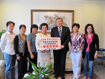 2010年7月29日,中国驻比利时使馆举行捐赠仪式,驻比大使张援远代表外交部,接受比利时中华妇女联合会(简称“妇女会”)向云南省金平县贫困学生的捐款,并亲切会见了女侨胞代表。