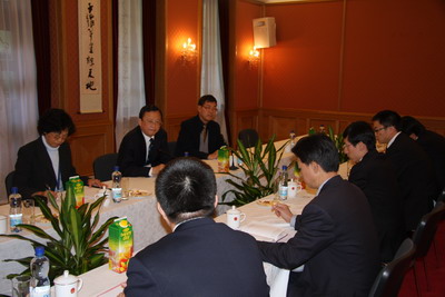 2010年10月13日,驻捷克大使于庆泰与部分在捷中资企业负责人座谈。