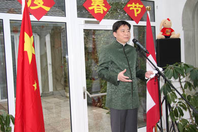 吴恳大使发表了热情洋溢的讲话。他说,“每逢佳节倍思亲”。每逢“佳节”中的“佳节”─中国传统农历春节,更是身在异乡的海外中华儿女们最为思念祖(籍)国的深情时刻。值此辛卯兔年来临之际,谨向所有在瑞同胞送上祖国的问候并致以热忱的新春祝福。