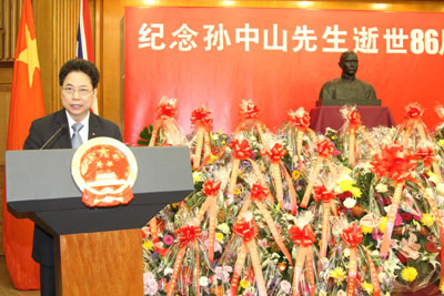 2011年3月11日,中国驻英国大使馆举行仪式,纪念杰出的爱国主义者、伟大的民族英雄和中国民主革命的先行者孙中山先生逝世86周年,并为纪念孙中山先生领导的辛亥革命100周年活动拉开序幕。