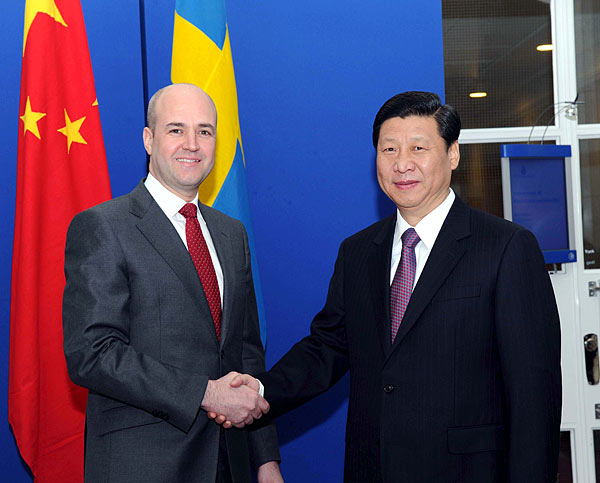 习近平首先转达了温家宝总理的问候。他说,此次访问瑞典主要是同瑞方共同庆祝中瑞建交60周年,共同推动务实合作,充实双边关系。当前中瑞高层往来频繁,经贸合作密切,双方在环保、教育、科技、文化等各领域合作十分活跃,相互了解不断加深。中瑞关系呈现全面深入发展的良好态势。在中瑞建交60周年之际,双方应进一步扩大合作,实现互利共赢。习近平就此提出三点建议: