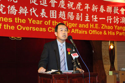章大使向来宾恭贺新年,对澳洲和统会在促进两岸关系发展中所起的积极、独特作用予以高度评价。章大使还简要介绍了去年以来中澳关系发展近况,强调进一步发展两国关系符合两国及两国人民的根本和长远利益。章大使鼓励澳洲和统会继续为推动两岸关系的和平发展作出贡献,也希望来宾为中澳友好合作做出努力。