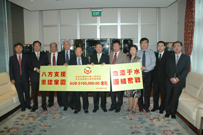 林辉源荣誉会长表示,广大华侨华人虽然身在海外,但心系祖(籍)国,对于青海玉树的地震灾害感同身受。澳洲中国和平统一促进会短时间内就为灾区人民筹款10万澳元并通过驻悉尼总领馆转交给灾区人民,希望用实际行动向灾区人民表达深切的关怀和慰问。
