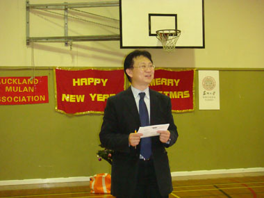 新西兰苏州大学校友会会长王小选代表四个社团首先致辞。他祝与会人员圣诞、新年快乐,表示两岸同胞都是炎黄子孙,龙的传人,此次两岸同胞社团共庆圣诞和新年很有意义。