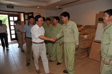 2011年2月2日上午,陈育明大使在洪亮公参、张昭会参赞、朱晓京参赞、马天书主任的陪同下,亲切看望了辛勤工作在使馆后勤保障一线的物业、工勤人员。
