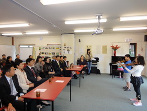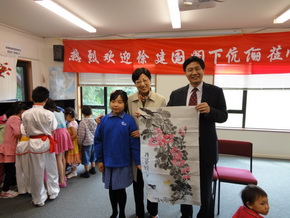 艾黎中文学校学生表演文艺节目 艾黎中文学校学生向徐大使夫妇赠送绘画作品