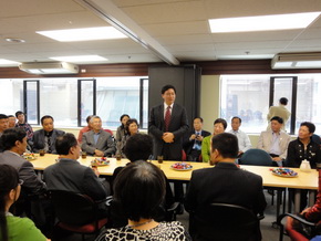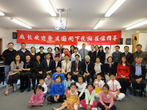 徐大使在与华人华侨座谈会上讲话 徐大使夫妇一行与学者、留学生代表合影