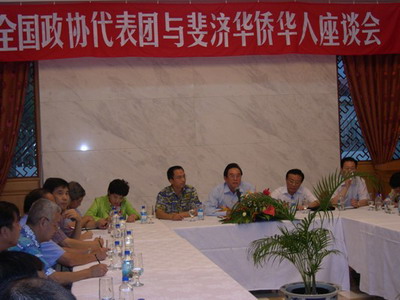 陈主任首先向旅斐华侨华人表示慰问,感谢他们多年来对祖(籍)国的关心和支持,对他们在祖(籍)国遭受自然灾害时积极捐款,与灾区民众共度时艰表示赞赏,鼓励和希望他们继续为祖(籍)国的发展建设奉献力量。陈主任还介绍了中国经济社会发展及两岸关系近况。侨领们向代表团介绍了斐侨界情况,表示旅斐华侨华人心系祖(籍)国,对祖(籍)国成功举办北京奥运会和顺利举行上海世博会感到由衷高兴,期盼祖(籍)国保持强劲发展势头,早日实现中华民族伟大复兴。