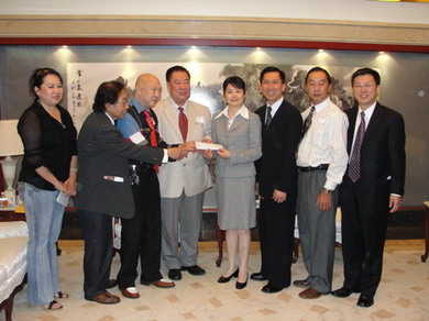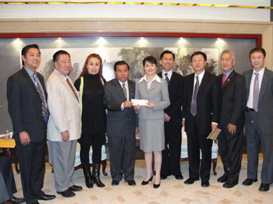 2010年4月27日,驻休斯敦总领事高燕平在总领馆办公楼接受美国休斯敦越棉寮华裔联谊会、潮州会馆、孔子基金会和中国和平统一促进会等侨团为中国青海玉树地震灾区筹集的捐款。总领馆副总领事周鼎和领侨组组长储开旻等在座。