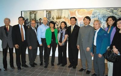 林顿夫妇(左四、左五)、王裕佳(右五)、华文娟(左六)等人在活动开幕式上。(加拿大《世界日报》∕王露摄)