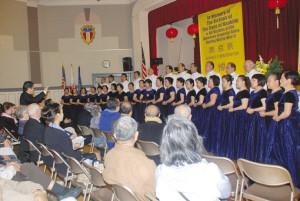 旧金山华人合唱团成员高歌《黄河大合唱》,引起与会者的共鸣与同仇敌忾。(美国《侨报》∕吴卓明 摄)