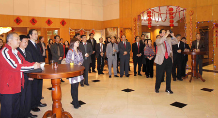 2011年1月25日,中国驻休斯敦总领事高燕平在官邸为休斯敦侨界志愿者代表和文艺社团负责人举行招待会,总领馆副总领事张传兵、领事蔡炼等50多人出席。